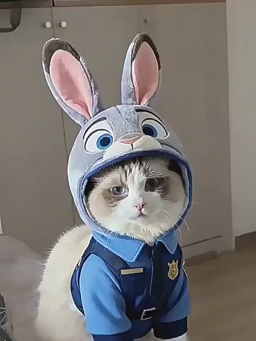 Cute Bunny Police Officer Pet Hat – Winter Headpiece for Dogs & Cats