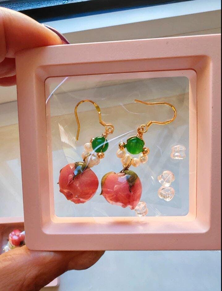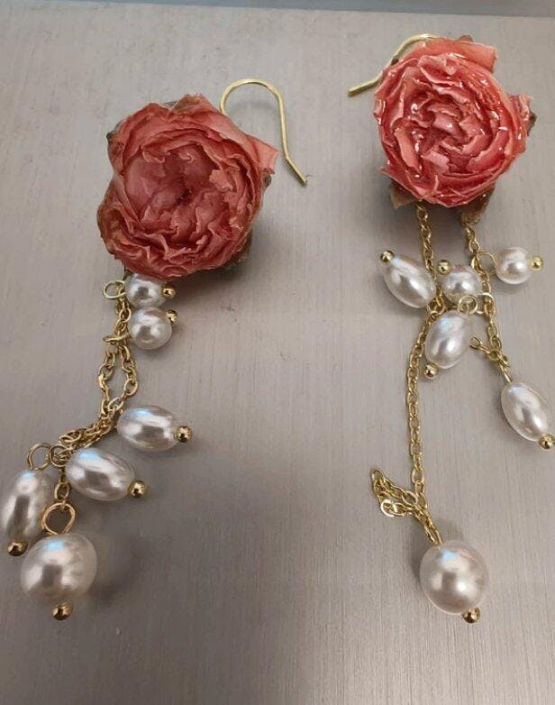 Verdanthands- Handmade Real Flower Earrings Pink Rose