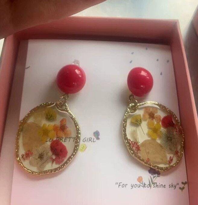 Verdanthands- Handmade Epoxy Real flower Earrings With Real Flowers