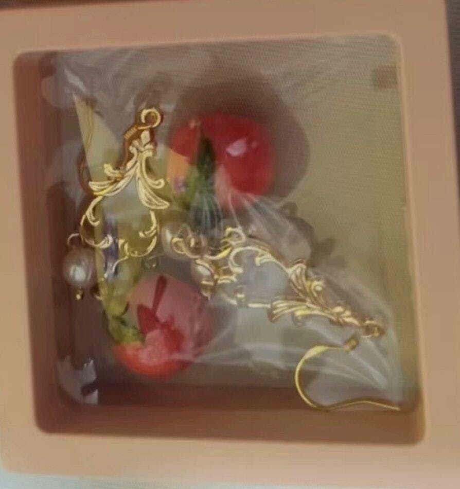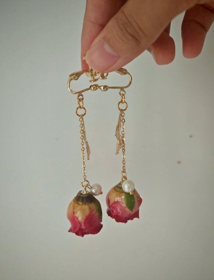 Verdanthands- Handmade Real Flower Earrings Baroque Style Pearl and Preserved Flower Earrings with Dried Roses